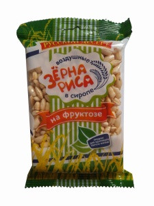 Состав: рис шлифованный (крупа), фруктоза, патока, заменитель молочного жира (рафинированные дезодорированные растительные масла, антиокислитель концентрат смеси токоферолов).