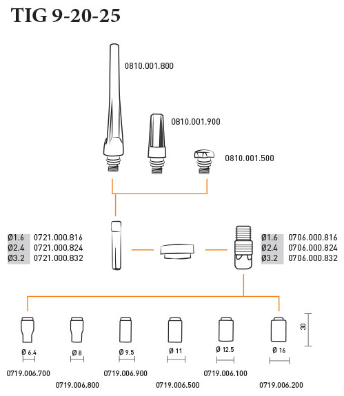 Существует 2 варианта силовых разъемов TIG PLUG: 25 мм2 и 50 мм2. Для правильного подбора горелки к конкретному инвертору необходимо знать соответствующую аппаратную часть.