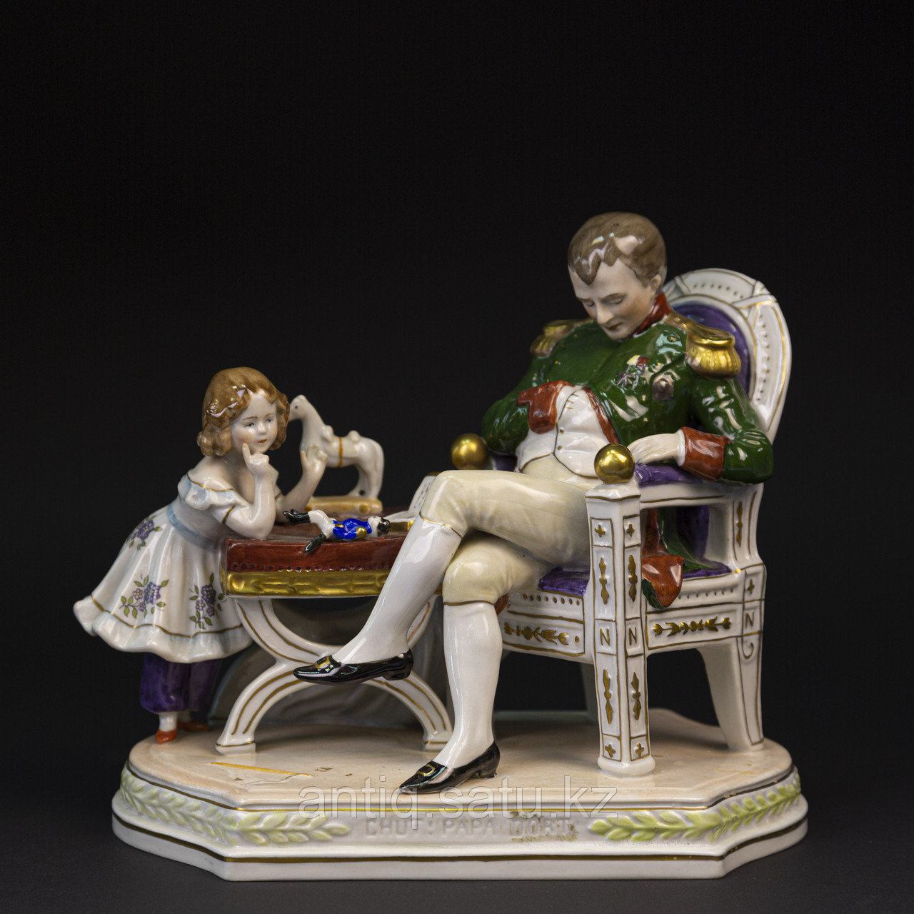Первоисточником статуэтки «Chut! Papa dort!» («Тише! Папа спит»), с которого была создана данная фигура, являлась картина «Наполеон и его сын римский король». Это трогательная сценка, изображающая маленького мальчика, с красивыми локонами. Его совсем не интересуют игрушки, лежащие на столе, он прижимает пальчик к губам, как бы говоря зрителям «Тише! Папа спит». Рядом с ним, в красивом ампирном кресле спит папа — Наполеон Бонапарт.
